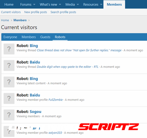 We also add the current robot count to the Members online widget and the Online statistics widget (from the current visitor page). This can be disabled via the options.