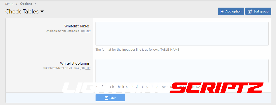 - Whitelist - Tables