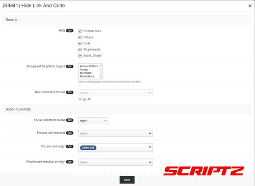 This plugin will hide LINKS, CODE, IMAGES and [HIDE] in forum posts automatically. Members can use REACTIONS or REPLY to see the hidden content.