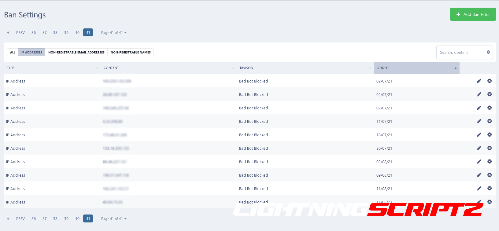 - All IP addresses are blocked using the Invision Administrator Lockout Settings.