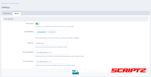 - Webmasters can also receive emails every time a bot is blocked/banned.