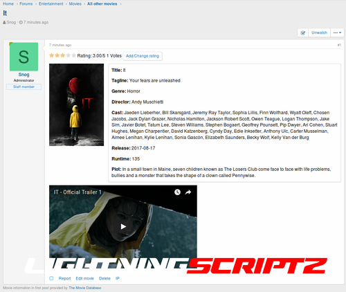 Do you run a movie review or discussion site? Always copying and pasting information from The Movie Database to your new threads? Or, maybe you just want a place on your site to discuss movies with friends.