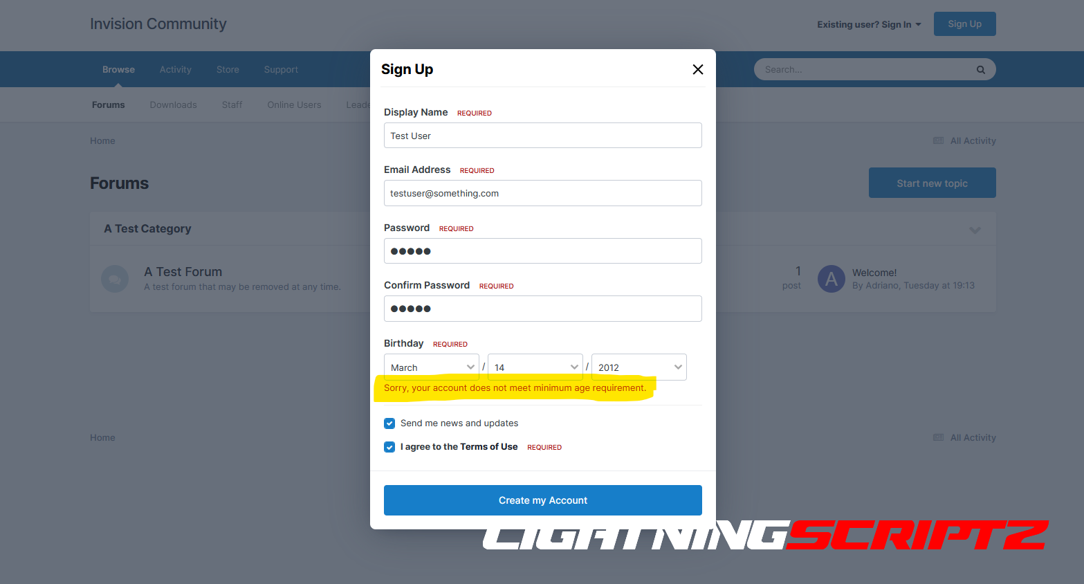 New accounts will only be registered if they meet the minimum age requirements.