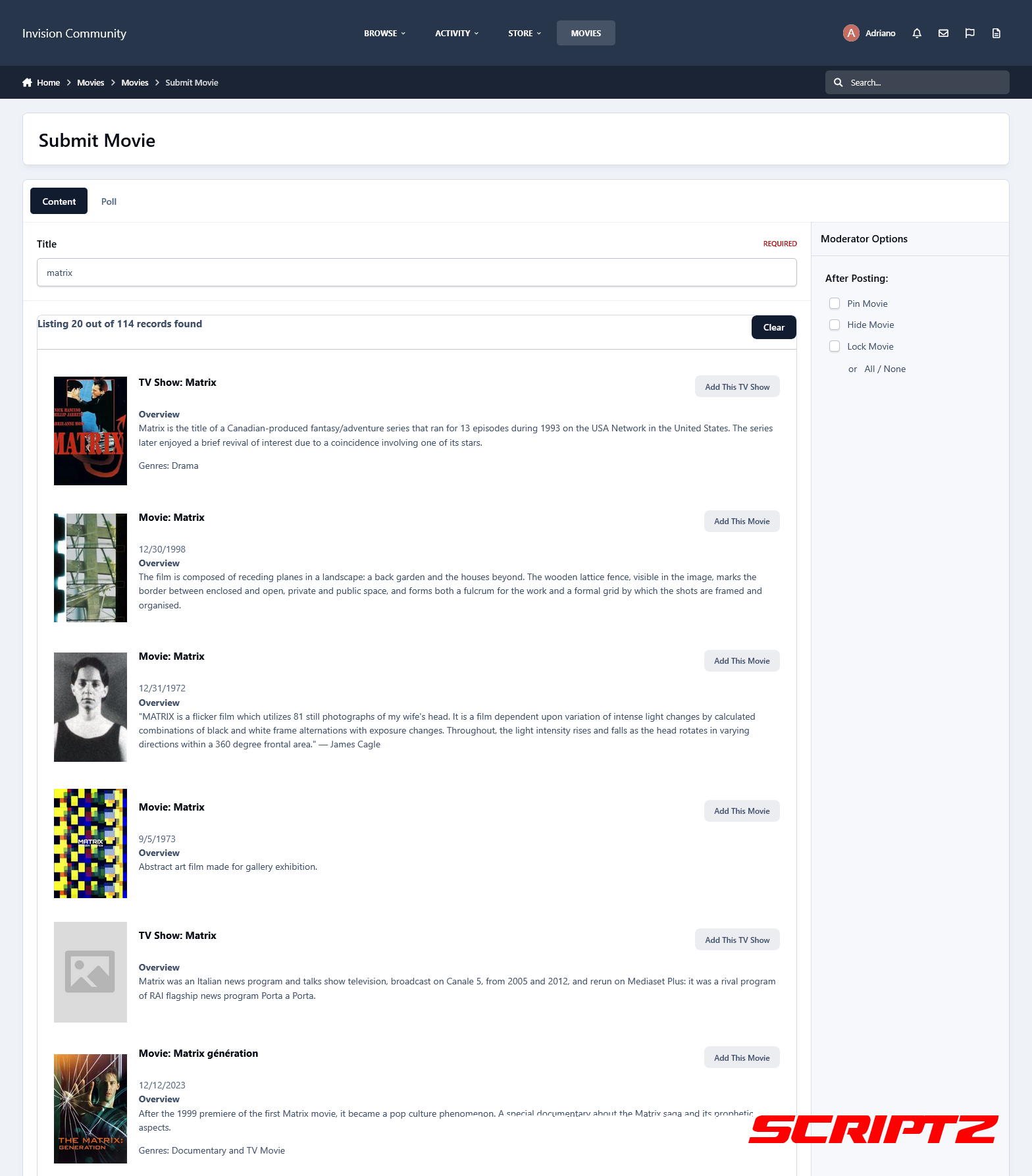 All you have to do is type a word from the movie/TV show title, and then a list of matches will appear. From now on, with just a click, you will have the submission form: