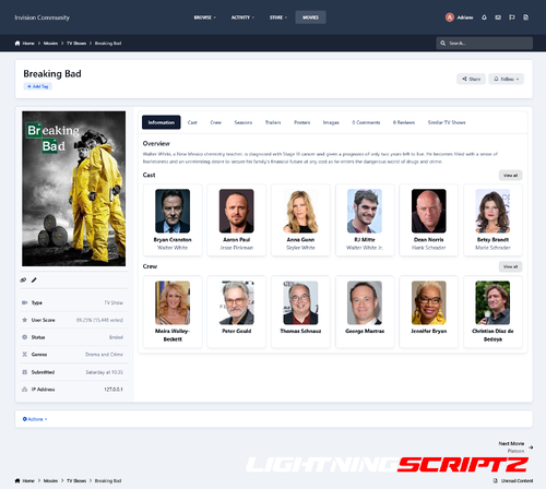 This resource uses The Movie Database API to grab data from Movies/TV Shows to your site.