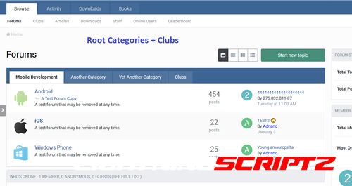 About This File Apps will display categories/forums as tabs in the forum index. Create your own tabs: You can create as many tabs as you want. There are 4 types of tabs: All Root Categories: One tab will be added for each root category. Specific Root Categories: You can choose how many root categories you want to display on the tab. Specific Forums: You can choose how many forums you want to display in a tab Individual Club Forums: You can choose which club forums you want to display in the tab. Multi-language support: You can give the tabs different names depending on the languages installed on your board. Permission tab: You can also choose which groups of users can view each tab. On the style tab: Table view Grid view Notes: This will add a new display option to the index if you allow members to choose the type of forum view. The second line of tabs will appear if you have many root categories. Less is more. Compatibility : 4.7 -